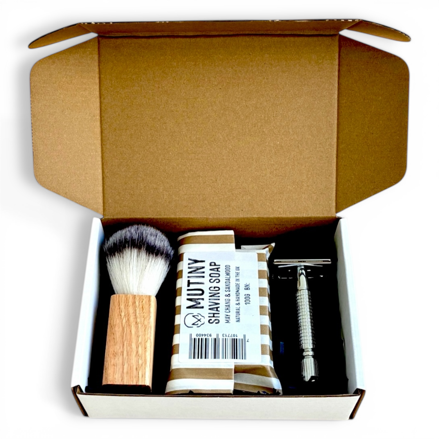 • Shaving Brush: A vegan-friendly brush that feels great on your skin and helps create a thick, smooth lather for the perfect shave.