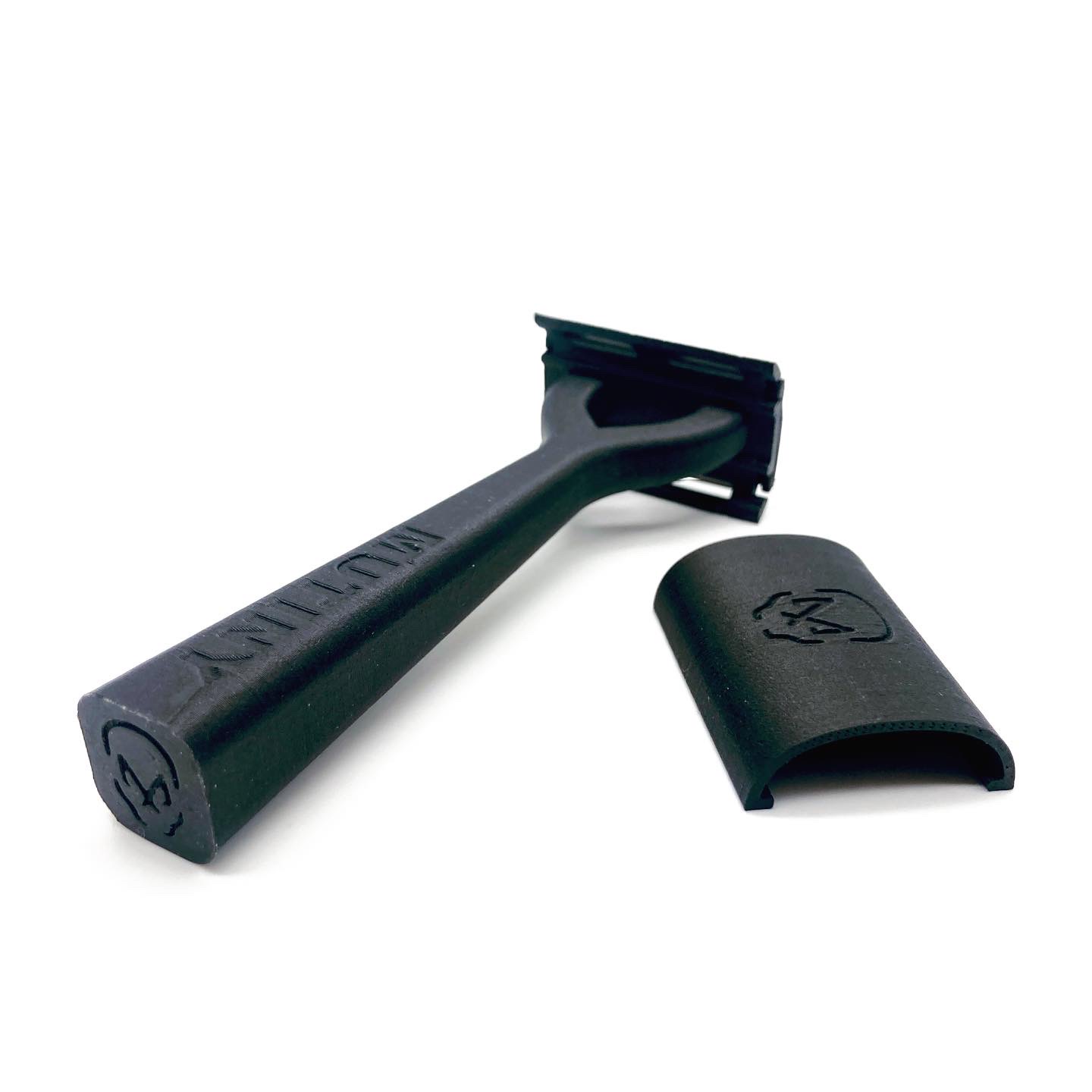 Download our basic R1 razor to be printed anywhere in the world. This stunning 3 piece razor with amazing wishbone click design can be downloaded to be printed in any material you desire, it really is up to you and a way to own a unique R1 razor with no transport or manufacturing pollution, a world first in this industry.